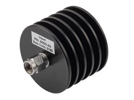 40 dB 固定衰减器,2.92mm 公头至 2.92mm 母头黑色阳极氧化铝散热器主体,额定功率为 10 W,频率高达 40 GHz