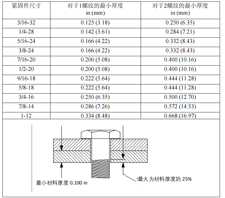 表5 靠近有螺纹轴承的螺纹紧固件的最小材料厚度