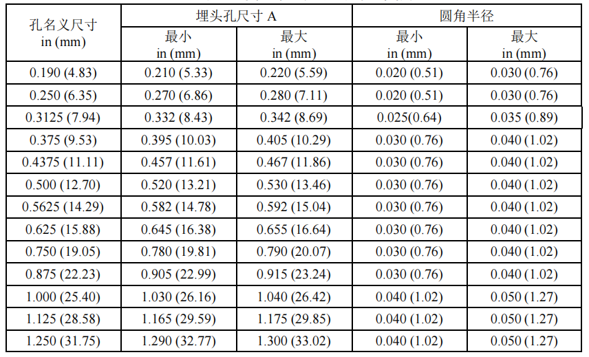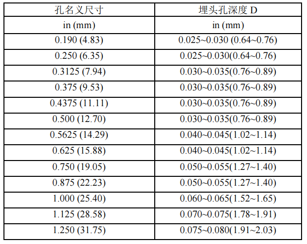 表2 埋头孔和次级埋头孔的名义直径尺寸a