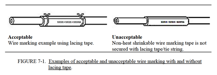 g.验证标识是否清晰可辨,并包含系统、子系统、参考代号或项目标识的适用标识符。如果使用标签或胶带(B637-1-500黄色),确保按照A-A-52083或A-A-52084用线束绑扎带固定(见图7-1)。