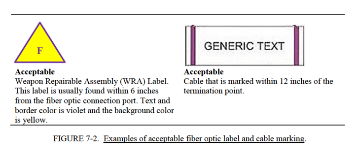 b.只能使用间接标识方法对光纤光缆进行标识。除非平台维护手册中另有规定,否则应在以下位置用印刷套管识别带有间接标识的光缆束或线束。按如下检查光纤光缆: