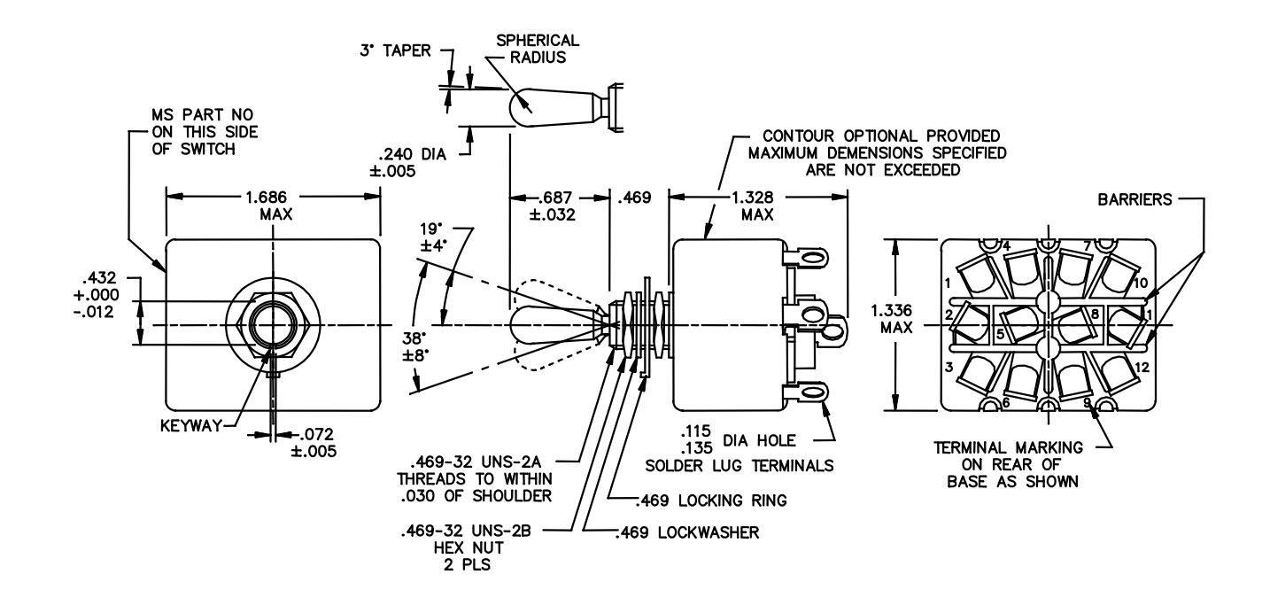 Switch, Toggle, Positive Break, Environmentally Sealed, Solder Lug, Four Pole, .469 Mounting Bushing, 25 Amperes